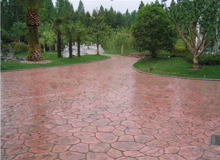 壓花地坪,又叫壓模地坪,壓印地坪。壓花地坪的圖案框架現(xiàn)場澆筑、