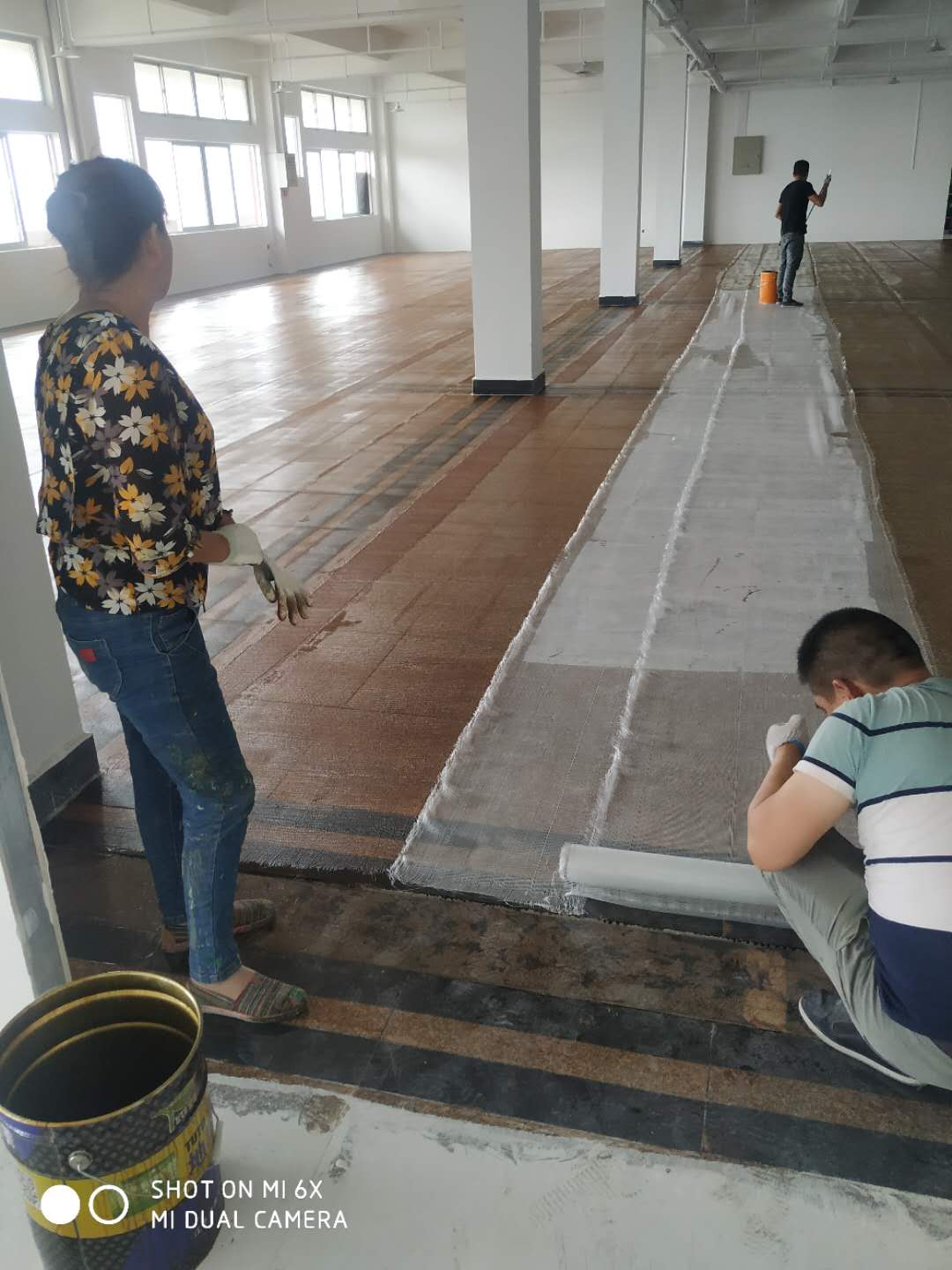 鋪 玻 纖 布:將玻纖布平鋪,用乙烯基酯樹脂將玻纖布粘附地面上,并用批刀將乙烯基酯樹脂均勻涂布,依需要做3-5層;